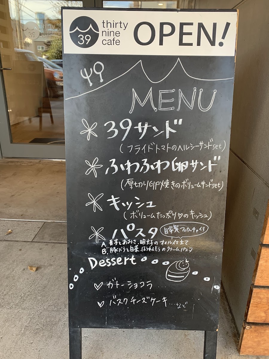 Welcome to Thurty Nine Cafe, an inviting culinary gem nestled in Chiryu, Aichi, Japan. Known for its warm atmosphere and attentive service, this cafe offers a delightful array of dishes perfect for gatherings with family and friends. The menu boasts a variety of options, highlighting their signature 39 Sandwich, filled with flavorful fried tomatoes and aromatic basil, perfect for even the pickiest eaters. Don't miss the morning sandwich set, featuring fluffy egg sandwiches that are both hearty and comforting.
